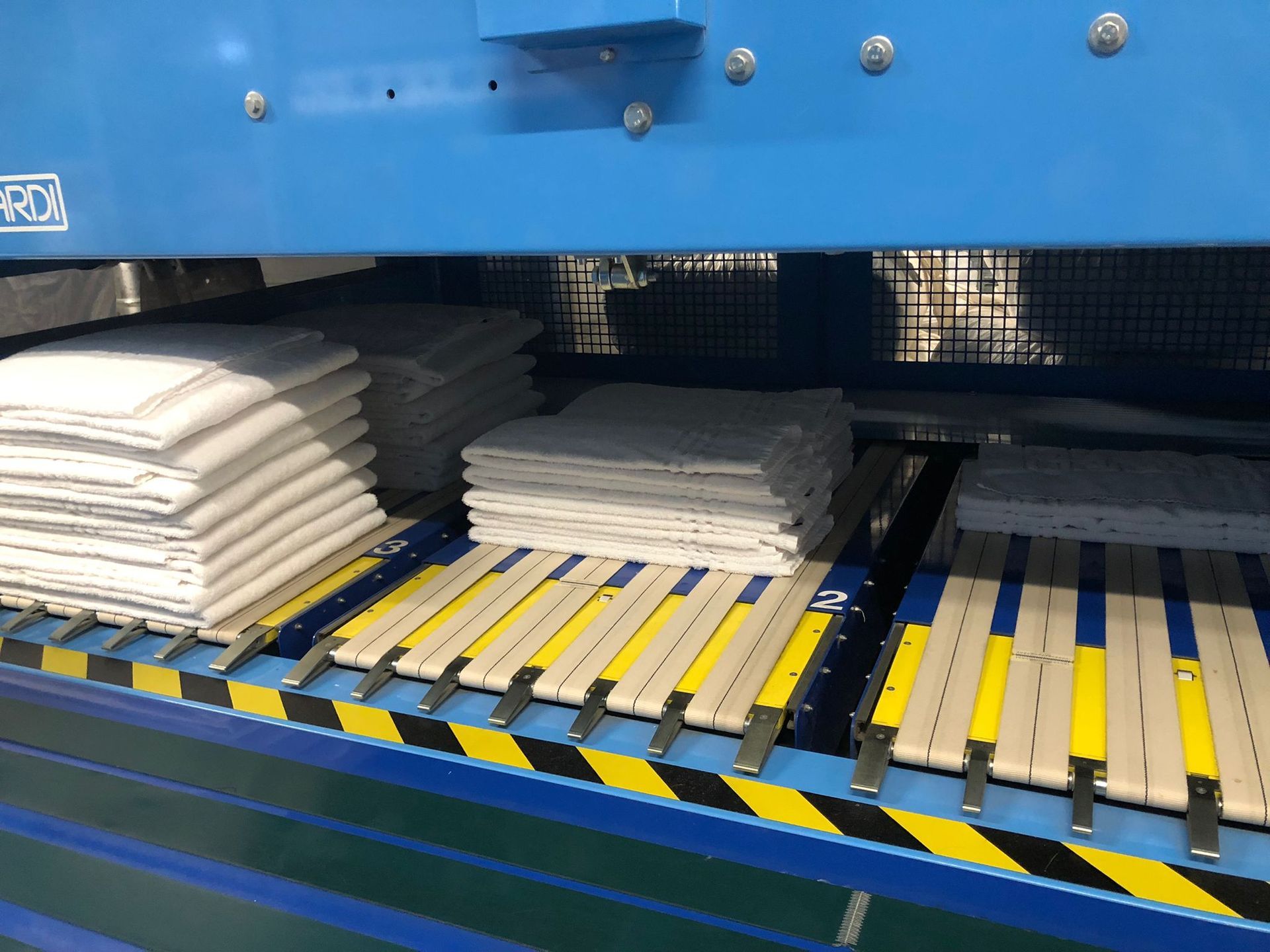Impianto di lavaggio continuo e sistemi di stiratura moderni per garantire igiene impeccabile, rapidità e risultati costanti anche su grandi volumi.